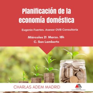 Eugenio Fuertes, Asesor OVB Consultoría nos ayudarán a planificar mejor la economía familiar en esta charla que cierra el mes de marzo en ADEMM.