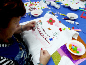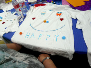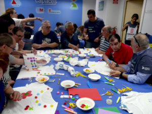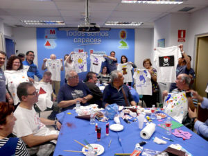 Una primera parte de customización de camisetas, supervisados y coordinando la actividad los chicos de la Fundación fdi que fueron los monitores y supervisores de los talleres mientras los voluntarios de Liberty Seguros ayudaban en sus tareas a los afectados.