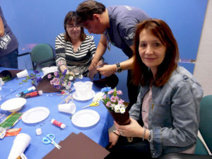 La segunda parte del taller estuvo ocupada por una sesión de “Florterapia” o arte con flores en la que hicieron preciosas composiciones y les enseñaron varias técnicas con flores secas que luego poder llevarse a casa.