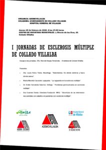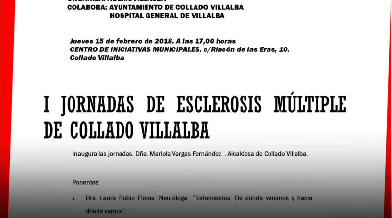 La Asociación de Esclerosis Múltiple de Collado Villalba celebrará el próximo 15 de febrero, la I Jornada dedicada a la Esclerosis Múltiple. Tendrá lugar en el Centro de Iniciativas Municipales (c/ Rincón de las Eras 10, Collado Villalba) a las 17.00 horas.